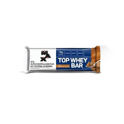 Top Whey Bar 41g - Sabor: Doce de Leite Top Whey Bar 41g Top Whey Bar apresenta um blend de proteínas: Whey Protein Concentrado, Caseinato de Calcio e Colágeno Hidrolisado, e um recheio cremoso, trazendo mais maciez para a barra. Uma parte do carboidrato presente na barra é maltitol poliól , que apresenta a vantagem de um menor consumo calórico do que açúcares, 2.4kcal vs 4kcal por g de alimento e uma resposta glicêmica reduzida comparado com a sacarose. Top Whey Bar pode ser consumida no seu lanche, a qualquer momento do dia. Também pode ser consumida no pós-treino e, para quem gosta de doces, é uma excelente opção para substituição ou, como sobremesa -- Top Whey Bar é uma barra proteica que oferece praticidade e muito sabor. benefícios: - Aporte de proteínas;- 11 a 13g de proteína por barra;- Com Whey Protein Concentrado;- Até 2,4g de fibra alimentar;- Auxiliam na formação dos músculos e ossos;- Pode ser usada como lanche intermediário;- Macia e muito saborosa. Ean: 7899941202832