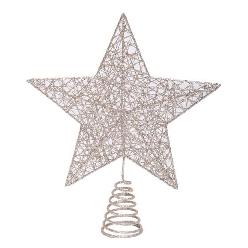 Ponteira De Árvore Estrela Aramada Champagne C/ Glitter 30x25x6cm 1 Unid 1019340