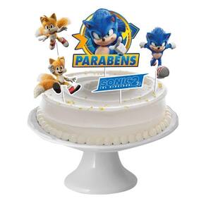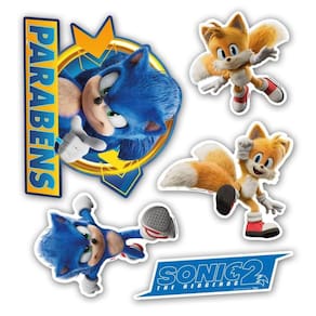 Contém: 01 Topo de Bolo da Sonic 2 Cenário Topper (01 Topper maior e 04 Picks)