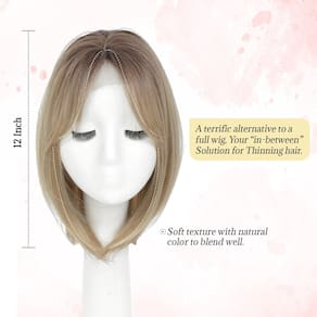 Ms Taj Topper de cabelo de 30 cm para mulheres com cabelo fino 16,5 cm x 16,5 cm Topper de cabelo sintético de base grande com franja Wiglets de fibra para mulheres - Ombre Loiro escuro