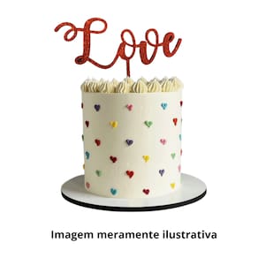 Topper Decorativo p/ Bolo Love Vermelho com Glitter