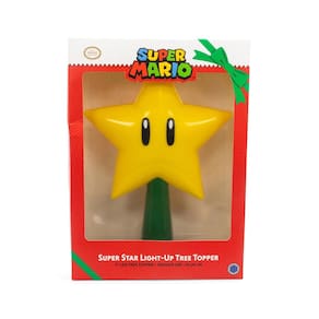 - Mario For The Holidays: Melhore suas férias com este enfeite decorativo Super Mario Bros. Super Star Tree Topper. A época mais maravilhosa do ano acabou de subir de nível com seu videogame favorito.