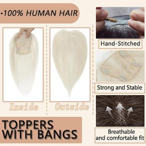 - Topper de cabelo real multifunções: as peças de cabelo para mulheres são uma opção perfeita e solução para queda de cabelo. Este enfeite de cabelo humano é adequado para pessoas no estágio inicial ou intermediário da perda de cabelo. Adicionará volume ao seu cabelo, cobrirá cabelos grisalhos e uma ligeira calva, modelará o rosto etc. Traga um novo estilo de cabelo moderno e transforme seu visual instantaneamente