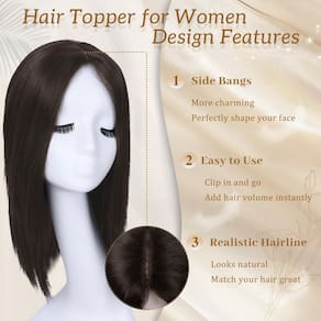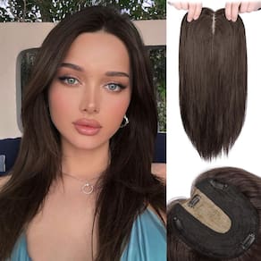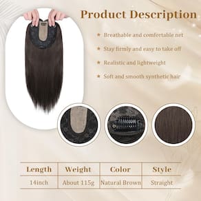 Este enfeite de cabelo feminino é feito de fibra sintética de alta qualidade e resistente ao calor, é macio e sedoso, o que o torna muito adequado para uso diário. As peças de cabelo para mulheres podem adicionar volume ao seu cabelo, blusa fofa e cobrir problemas de cabelo instantaneamente. É perfeita para mulheres com queda de cabelo suave, cabelos brancos, cabelos grisalhos, linha do cabelo alta, linha do cabelo larga e couro cabeludo danificado. Pode fazer com que você tenha cabelos grossos facilmente e rapidamente. Não se preocupe mais com problemas de cabelo. O clipe tem 4 clipes antiderrapantes, basta abrir os 4 clipes antiderrapantes e instalar o topo de cabelo. Ele permanece no lugar e pode ser facilmente instalado e removido. Não se preocupe em soltar ou escorregar. Comprimento-35,5 cm e 45,7 cm. Cor: topo de cabelo preto natural, castanho natural, cobre , marrom escuro com alto Topo de cabelo com luzes, cabelo loiro claro, topo de cabelo loiro champanhe, castanho claro, néctar das flores loiro, loiro escuro, mistura loira, etc. Um simples enfeite de cabelo sintético torna a vida mais fácil e conveniente. - ?Materiais premium?Este enfeite de cabelo feminino possui uma base grande de 14,6 x 14,2 cm, pesa 115 gramas e linha de cabelo de renda feita à mão. É feito de fibra sintética de alta qualidade e resistente ao calor, macio e sedoso. Também é seguro e ecológico, tornando-o muito adequado para uso diário - ?Leve e natural?Os topos de cabelo para mulheres com cabelo fino têm uma linha do cabelo realista e natural, rede de base respirável e confortável. As peças de cabelo para mulheres são mais finas e leves do que a peruca pesada e grossa. Transforme seu visual em segundos com volume e comprimento luxuosos e naturais. É ótimo para uso diário sem esforço - ?Fácil de usar?O topo de cabelo com clipe tem 4 clipes antiderrapantes. Não é necessário cola, costura ou touca de peruca, basta abrir os 4 clipes antiderrapantes e instalar o topo de cabelo. Não leva muito tempo como a peruca, ela permanece no lugar e pode ser facilmente instalada e removida. Não se preocupe em soltar ou escorregar - ?Resolva problemas de cabelo?As peças de cabelo para mulheres podem adicionar volume ao seu cabelo, cabelo fofo e cobrir problemas de cabelo instantaneamente. É perfeita para mulheres com queda de cabelo suave, cabelos brancos, cabelos grisalhos, linha do cabelo alta, linha do cabelo larga e couro cabeludo danificado. Pode fazer você ter cabelos grossos facilmente e rapidamente. Não é mais incomodado por problemas de cabelo - ?Dicas quentes?1. Os topos de peruca para queda de cabelo não podem substituir uma peruca e não são adequados para pessoas com calvície severa. 2. Você pode cortar o topo de cabelo mais curto ou mais fino de acordo com suas necessidades. 3. Devido à influência do monitor e da luz, pode haver uma ligeira diferença de cor entre o produto e a imagem, espero que você possa entender