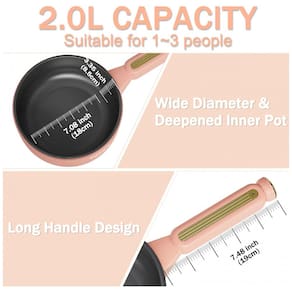 A panela elétrica TopWit possui capacidade de 2 litros, com diâmetro interno de 18 cm e profundidade de 8,5 cm, ideal para fritar, saltear, cozinhar lentamente, refogar e preparar diversas receitas. Seu design com alça estendida de 19 cm proporciona uma pegada confortável, facilitando o manuseio e economizando esforço durante o uso. Com controle de potência dupla, você pode ajustar facilmente a temperatura conforme a necessidade: potência baixa de 250W para preparar ovos fritos, ramen e mingau, e potência alta de 600W para bifes, pratos quentes, legumes refogados e muito mais. Essa versatilidade permite substituir fogões e panelas tradicionais, trazendo mais praticidade para o dia a dia. Compacta e portátil, essa panela elétrica é perfeita para cozinhas pequenas, dormitórios, escritórios, apartamentos individuais e acampamentos, facilitando o armazenamento e o transporte. Também é ideal para quem vive na estrada e gosta de cozinhar em veículos recreativos. Seu revestimento interno antiaderente atualizado é livre de PFOA e BPA, garantindo alimentos mais saudáveis e evitando que a comida grude. A superfície pode ser facilmente limpa com água e uma esponja após o uso. Para maior segurança, a TopWit conta com tecnologia de elemento de aquecimento embutido circular, que aquece rápida e uniformemente, prevenindo queimaduras no alimento. Além disso, possui proteção contra superaquecimento e funcionamento a seco, protegendo a panela em situações de calor excessivo ou falta de líquido.