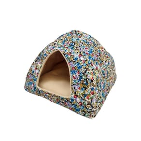 A Toquinha Azul feita de Tricoline tem uma apresentação incrível, a estampa dela remete a obras de artes com referências urbanas, por dentro da toca ela é forrada com a cor bege para trazer uma elegância, também contém uma manta para deixar seu pet super aquecido e confortável, proporcione para o seu pet uma experiência única e irresistível com essa novidade