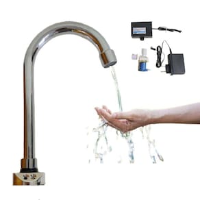 Torneira eletrônica de mesa on-off em latão cromadoTorneira com sensor automática bivolt, ideal para lavatórios profissionais, consultórios, clínicas, banheiros públicos e banheiros para deficiente. A torneira sensorizada de mesa cromada reúne praticidade e conforto para a correta higienização de mãos em qualquer local, evitando a contaminação cruzada em aplicações profissionais. A torneira se adapta facilmente a diversos modelos de pias e cubas e dispensa o contato manual, pois é acionada automaticamente por meio de sensores de presença, gerando economia de até 70% de água, atendendo as exigências da vigilância nbr 9050 .Produto nacional com garantia de até 1 ano para qualquer defeito de fabricação e assistência técnica. É um produto composto de 4 módulos: sensor, fonte, válvula e módulo eletrônico. Reduzindo assim, o custo da manutenção.Funcionamento:Passar a mão em frente do sensor da torneira eletrônica para ligar.Passar a mão novamente em frente do sensor da torneira eletrônica para desligar ou então, a torneira eletrônica vai desligar no tempo programado. A programação para desligar a torneira eletrônica, poderá ser feito a qualquer momento.Praticidade: utilizando a torneira eletrônica, você terá água, mesmo com as mãos ocupadas;Higiene: utizando a torneira com sensor, você evitará contaminação cruzada;Economia: utilizando a torneira sensorizada, você utilizará somente a água que necessita, assim, evitará o desperdício e economizará até 70%;Meio ambiente: utilizando a torneira eletrônica, você estará contribuindo para um mundo mais sustentável.Instalação:- colocar a torneira eletrônica no furo da pia, passar o cabo do sensor, juntamente com o tubo roscado da bica no furo da pia ou bancada.- embaixo da pia ou bancada, passar o cabo do sensor, que vem da torneira eletrônica, no anel de vedação e na flange.- rosquear a flange na torneira eletrônica, até fixar a bica na pia ou bancada.- rosquear a válvula lado macho na entrada da água, depois rosquear o engate no lado fêmea da válvula. Utilizar fita teflon para evitar vazamentos.- rosquear o engate no tubo roscado na base da torneira eletrônica. Não utilizar fita teflon.- conectar o cabo do sensor no módulo da válvula.- ligue o cabo da energia elétrica para o funcionamento da torneira eletrônica.Informações técnicas:- tensão de alimentação da torneira eletrônica: bivolt.- pressão de funcionamento da torneira eletrônica: mínima 0,2 kgf/cm e máxima 8,0 kgf/cm , equivalente a coluna de 2m e 80m respectivamente.- conexão roscável da torneira eletrônica: polegada.- cabo de energia da torneira eletrônica: 1,2m de comprimento- cabo do sensor da torneira eletrônica: 60 cm de comprimento- consumo da torneira eletrônica: 0,3w em repouso e 6,6w quando acionada.- torneira eletrônica: latão cromado com altura de 14cm entre a base e saída da água .- regulagem para da sensibilidade do sensor no módulo eletrônico.
