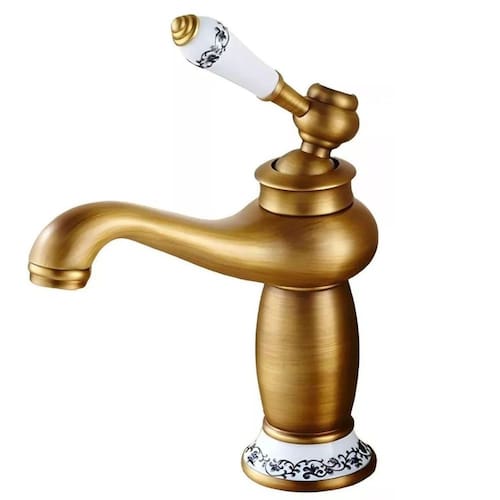 Torneira Banheiro Bronze Porcelana Baixa Monocomando Vintage