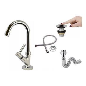 Kit Torneira Bica Móvel Luxo + Engate Flexível 40 CM + Válvula Click + Sifão Sanfonado/Extensivo Cromado.