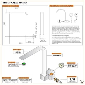 Torneira pia lavatório banheiro quadrada parede reta acabamento quadrado 1/4 de volta cromada luxo A torneira para lavatório banheiro possui um design super moderno, tornando seu banheiro mais elegante e prático. É feita de metal, o que confere grande resistência e durabilidade ao produto. Além disso, possui um acabamento de alta qualidade, que adiciona estilo e requinte à peça. O acionamento é de 1/4 de volta e possui um arejador econômico, que reduz o consumo de água ao misturar ar com água, aumentando seu volume e proporcionando uma sensação de maior quantidade. O controle de vazão é feito através do arejador, que torna a água macia e espumosa, reduzindo a pressão e evitando salpicos. Essa torneira é uma ótima opção para quem procura um produto de alta qualidade. Seu design moderno a torna um belo objeto decorativo. Espercificações técnicas: - marca: shop hidraulica - : 5 anos - posição de instalação: parede - bitola: 1/2 - pressão mín.: 4 m.C.A - pressão máx.: 40 m.C.A - vazão mín.: 4 l/m - vazão máx.: 12 l/m - temperatura máx.: 70 c - mecanismo: cerâmico 1/4 de volta - composição: metal - ciclo de abertura: 1 estágio. Marca: Não Informado