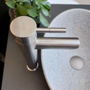 Torneira De Banheiro Monocomando Bica Alta Redonda Prata Escovada Rtl 19 Torneira Misturador Monocomando Prata Escovada. Transforme seu banheiro com luxo e sofisticação. Esta torneira monocomando com bica alta prata escovada oferece água quente e fria, design moderno e alta durabilidade. Ideal para alta pressão, é perfeita para quem busca beleza e eficiência. Bica alta Água quente e fria Linda Torneira Redonda Prata Escovada, super moderna. Torneira Utilizado para sistema de alta pressão de água, com uma pressão máxima de 600kpa. Produzida em aço inox de alta qualidade, antioxidante e anticorrosivo. Seu sistema interno é feito com um cartucho cerâmico que pode durar mais de 600.000 vezes de uso Superior as vendidas no mercado. de 3 anos contra defeito de fabricação. Especificações: Marca: reno Modelo: rtl 19 Material: aço Inox 304 Cor: prata Escovada Sistema: monocomando Formato: redondo : 3 anos contra defeitos de fabricação Instalação: Furação da bancada: 35mm de diâmetro. Kit de instalação incluso com: duas mangueiras para água quente e fria, rosca de fixação com porca para aperto e borrachas de vedação. Pressão: 4 mca metros por coluna d'água a 40 mca. Dúvidas a Banho&Casa estará à disposição para atendê-los de segunda a sexta das 8:30 - 17:30 hrs. Marca: Não Informado