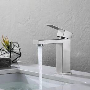 Torneira Banheiro Monocomando Quadrada Baixa Aço Escovado