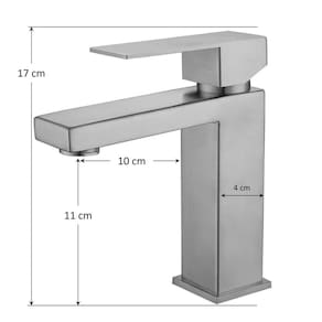 Torneira Banheiro Monocomando Quadrada Baixa Aço Escovado Cor: Aço Escovado A Torneira monocomando quadrada confere ao seu banheiro um toque moderno e luxuoso. Seu acionamento com misturador integrado permite a saída de água quente e fria simultaneamente, proporcionando uma temperatura agradável ao toque. Informações Técnicas: Material: Liga de Aço Inox e CobreAcabamento: Aço EscovadoPressão Mínima: 4 McaPressão Máxima: 40 McaTemperatura máxima da água: 90C - temperatura recomendada 65cFuração da Bancada: 35mmItens inclusos: Torneira, flexíveis e peças para fixação. O produto também pode ser utilizado somente com água fria, sendo necessária a instalação de um T no encanamento para alimentar as duas entradas de água da torneira T não incluso . Recomendação de limpeza: Limpar apenas com pano macio e sabão neutro. Não usar produtos abrasivos como sapólio, palha de aço e produtos químicos. Marca: Alpes Metais