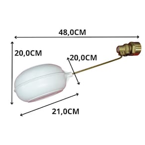 Torneira Boia Para Caixa d água Pressao Corpo Metal Balao Plastico De 2 Polegadas Torneira de Boia Modelo Pressão Super de 2 Polegada Esta boia é utilizada nas tubulações de 2 Equivalente a 50mm INDICAÇÕES: - Caixas Dágua; - Cisternas; - Reservatórios em geral. UTILIZAÇÃO: Em tubulações onde a grandes cargas . MODELO: - Boia - corpo de Metal - Haste de Metal - Boia ou Flutuador de Plástico - DN50mm - 2 Medidas Basicas: Comprimento 48,0cm Altura 20,0cm Larguta 21,0cm Mais Detalhes das Medidas nas Imagens FABRICANTE: METROX / IMPERATRIZ : 1 Ano de Fabrica
