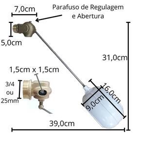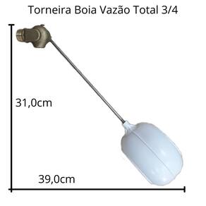 Torneira Boia Vazão Total Corpo Metal Para Caixa D água 3/4 Torneira de Boia Modelo Vasão Total de 3/4 de Polegada Esta boia é utilizada para tubulações com grande vazão de agua. UTILIZAÇÕES: - Cisternas - Caixas d água - Reservatórios em geral MODELO: - Vasão Total, não restringe a entrada de água - Fechamento a base de Sanfona de Borracha - Corpo de Metal - Haste de Metal - Boia ou Flutuador de Plástico - DN25mm - 3/4 FABRICANTE: METROX : 1 Ano de Fabrica Ean: 7899006720837