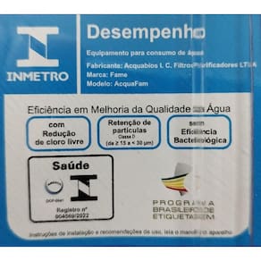 Eficiência de retenção de partículas: Classe D (=15 a Vazão máxima recomendada: 40L/H