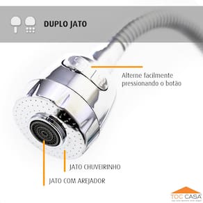 - Seu design é inspirado para você ter praticidade ao utiliza-la, tanto em lavar louça usando a função "JATO" ou alimentos na função "CHUVEIRINHO".