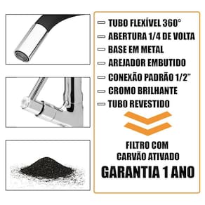 Torneira Com Filtro Gourmet Emborrachada Preta Bancada - praticidade ao lavar louças - design elegantemente despojado