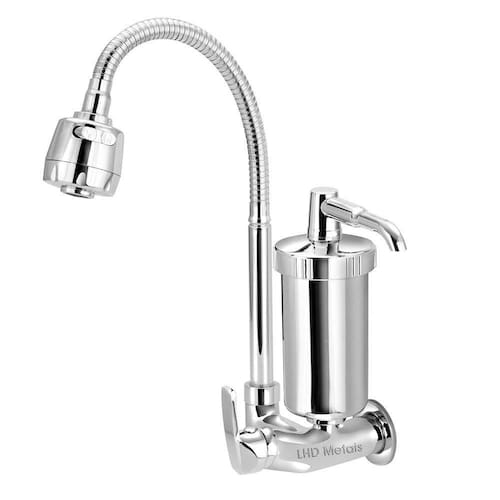 Torneira Com Filtro Gourmet Monocomando Cozinha De Parede Produto de total exclusividade da nossa loja. Torneira Com Filtro Monocomando Gourmet é fabricada 100% em metal cromado exceto o copo do filtro em ABS , garantindo resistência aos processos de corrosão e oxidação comuns em locais com excesso de água e umidade, além de preservar o brilho e a beleza da peça por muito mais tempo. Seu filtro é extremamente eficiente, Tecnologia moderna Pró Saúde garante uma filtragem ainda mais eficiente, com Refil Blindado Água não entra em contato com o copo do filtro . Além disso, a Torneira Com Filtro Monocomando Gourmet garante mais facilidade e funcionalidades que trazem mais conforto e comodidade para o seu dia a dia. Especificações: - Torneira fabricada em metal latão cromado de alta resistência e durabilidade, proporcionado um custo beneficio sem igual. - Pressão Mínima: 4 MCA metros de coluna d'água para um bom funcionamento - Entrada de água: 1/2 com adaptador para 3/4 - Sistema de Acionamento: monocomando pastilhas cerâmicas. - Filtro: Tecnologia moderna Pró Saúde garante uma filtragem ainda mais eficiente, Certificado Inmetro. - Refil: Blindado Água não entra em contato com o copo do filtro - Tubo: Gourmet bica Móvel totalmente flexível até 360 Graus - Arejador dupla função jato tipo chuveiro ou continuo. - Fácil instalação e manutenção. - Recomendações de Uso, Manutenção e Limpeza: Limpar a torneira apenas com um pano macio e sabão neutro. Não usar produtos abrasivos como: sapólio, palha de aço e produtos químicos. Marca: Lhd Metais