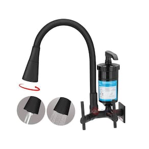As torneiras da linha All Black Gourmet são perfeitas para dar aquele toque especial ao ambiente, garantindo muito charme e sofisticação. Esta torneira é considerada muito prática para o dia a dia, pois sua bica flexível possibilita mover-se para vários lados, sua saída de água é com jato duplo contínuo ou chuveirinho, além de ter saída de água filtrada também.Resistente, totalmente preto fosco e com acabamento moderno.A torneira com filtro gourmet é de fácil instalação, pode ser utilizadas nos mais variados locais, como: Parede da cozinha, áreas de churrasqueira e demais áreas que desejar, não é demais. Especificações TécnicasMarca: Granville Metais SanitáriosModelo: Gourmet All BlackCores: Preto foscoMaterial: Ligas de cobre, bronze, zinco e plástico de engenhariaBase da entrada: bitola de 1/2 polegadaLocal indicado: Parede Uso indicado: Interno e ExternoMedidas da bica: 38cm podendo esticar para mais ou diminuir o cm Sistema de registro: 1/4 de volta, proporcionando mais economia de água.Acompanha: Copo e refil de filtro Certificado pelo InmetroRecomendação da instalação:Por se tratar de um produto cujo a bica é flexível, é extremamente importante seguir o manual de instalação impresso na embalagem.Recomendação da instalação na parede:Retirar a bica flexível, conforme manual, após a instalação do corpo da torneira na parede, rosqueá-lo novamente, tudo muito simples e prático.Conteúdo da embalagem:01 Torneira01 bucha de redução 3/401 Canopla de acabamento01 copo contendo o refil de filtro Certificado pelo Inmetro Marca: Granville Metais