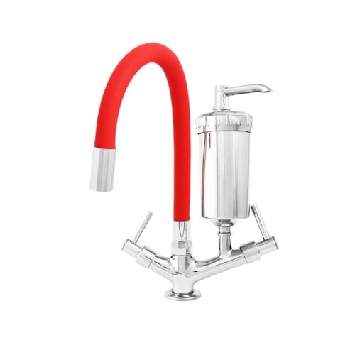Torneira com Filtro, Bica de silicone flexível Produto com selo INMETRO Bica: Silicone Vermelha Material da torneira: toda de metal Filtro: ABS cromado é necessário a troca da vela a cada 6 meses Instalação: Mesa Rosca de Fixação: 1/2" Filtro ABS Cromado Acabamento: Alavanca Mecanismo: 1/4 volta Indicações de uso: cozinhas, áreas gourmet Para um bom funcionamento, é necessário ter no mínimo 5 mca de água. 1 ano Marca: Não Informado