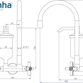 Dupla função, arejador, tubo de silicone flexível. Design sofisticado, corpo de metal cromado, altura 32 cm, ducha 12 cm, canopla de aço inox. Bica móvel 360°, altura 48 cm, mecanismo cerâmico 1/4 de volta, fixação na parede, bica móvel. Pressão de 4 a 40 MCA. Não usar produtos abrasivos.