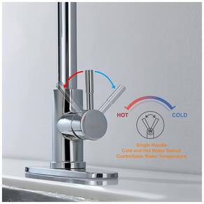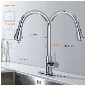Esta torneira para pia de cozinha é ideal para diferentes tipos de pias, como pia de armário, dropin, de trailer ou de fazenda. Ela vem com uma placa de deck para 1 ou 4 furos e um dispensador de sabão, tornando a atualização da sua cozinha mais fácil. A torneira possui um pulverizador de três modos, permitindo alternar entre fluxo, pulverização e pausa, tornando as tarefas domésticas mais convenientes. O revestimento metálico de revestimento profundo resiste a manchas e impressões digitais, mantendo a torneira com aparência de nova. A alça única permite controlar a temperatura da água fria e quente facilmente. A montagem é simples e pode ser feita seguindo as instruções ou o vídeo em apenas 20 minutos.