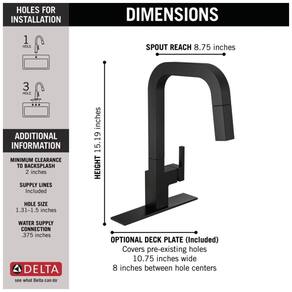 A Torneira Junction é uma opção moderna para sua cozinha, com uma estrutura quadrada industrial e ângulos arqueados. O Delta MagnaTite Docking é um recurso que utiliza um ímã poderoso para fixar o pulverizador pull down com precisão no lugar e mantê lo acoplado quando não estiver em uso. As torneiras para pia de cozinha com orifícios de spray TouchClean permitem que você limpe facilmente o acúmulo de cálcio e cal com o toque de um dedo. O design de arco baixo gira 360 graus com uma mangueira retrátil de 50 cm para maior comodidade durante as tarefas diárias da cozinha, enquanto o pulverizador de função dupla alterna facilmente entre spray e jato. As torneiras de cozinha Delta com orifícios de spray TouchClean permitem que você limpe o cálcio de forma rápida e fácil e acúmulo de calcário com o toque de um dedo, portanto, não há necessidade de molhar ou usar produtos de limpeza químicos. A válvula de retenção dupla integral no pulverizador e a mangueira de abastecimento flexível trançada em polímero com 96 cm garantem maior durabilidade e confiabilidade. A instalação é fácil e pode ser feita em furo único ou 3 furos, 20 cm de configurações, com tudo o que você precisa reunido em uma caixa, incluindo linhas de fornecimento trançadas e placa de deck opcional para instalação em 3 furos.