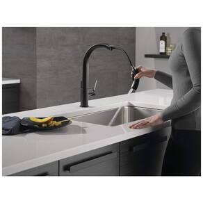 A torneira Keele foi projetada com um design minimalista que traz fluidez sem esforço para qualquer cozinha. O Delta MagnaTite Docking usa um ímã integrado para colocar o pulverizador pull down com precisão no lugar e mantê lo lá quando não estiver em uso. As torneiras para pia de cozinha com orifícios de spray TouchClean permitem que você limpe facilmente o acúmulo de cálcio e cal com o toque de um dedo. A instalação é fácil, pois a torneira foi projetada para caber em configurações de pia de cozinha de furo único ou 3 furos e 20 cm. Tudo o que você precisa está reunido em uma caixa, incluindo placa de deck opcional para instalação de 3 furos e linhas de fornecimento InnoFlex PEX integradas para menos um ponto de vazamento. As torneiras de cozinha Delta com furos de spray TouchClean permitem que você limpe rápida e facilmente o acúmulo de cálcio e calcário com o toque de um dedo, sem a necessidade de molhar ou usar produtos de limpeza químicos. A torneira Keele oferece flexibilidade completa, com um design de arco alto que gira 360 graus e uma mangueira retrátil de 50 cm para maior conveniência durante as tarefas diárias da cozinha. O pulverizador de função dupla alterna facilmente entre spray e jato.