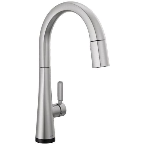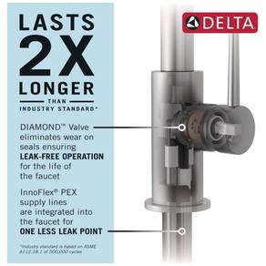 A torneira de cozinha Monrovia Kitchen Collection é uma peça escultural com um design marcante nos puxadores. Com a tecnologia Delta Touch2O, é possível ativar o fluxo de água com um simples toque em qualquer lugar da bica ou alça com o pulso ou antebraço, mantendo a torneira limpa mesmo com as mãos sujas. A luz LED Delta TempSense muda de cor para alertar sobre a temperatura da água e evitar surpresas ou desconfortos. O encaixe MagnaTite usa um ímã poderoso para manter o pulverizador de cozinha no lugar e evitar quedas. A tecnologia patenteada DIAMOND Seal reduz os pontos de vazamento e garante uma operação sem vazamentos durante a vida útil da torneira. A instalação é fácil e pode ser feita em configurações de furo único ou 3 furos de 20 cm. Os acabamentos Delta Lumicoat são resistentes a manchas de água e fáceis de limpar com orifícios de spray TouchClean. Além disso, a torneira está em conformidade com a legislação sem grafite.