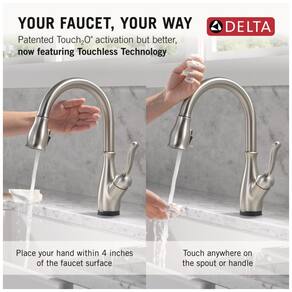 A coleção de cozinha Leland combina estilo tradicional com funcionalidade moderna. As torneiras Delta Touch2O possuem tecnologia Touchless que ajuda a manter a torneira livre de germes e sujeira, permitindo fácil controle da água de três maneiras aproximando a mão da torneira, batendo na superfície ou usando a alça padrão. A luz LED TempSense muda de cor para alertar sobre a temperatura da água. O MagnaTite Docking usa um ímã integrado para manter o bastão de pulverização no lugar. A tecnologia SpotShield ajuda a manter a torneira limpa por mais tempo. A tecnologia ShieldSpray limpa com precisão e contém respingos. As torneiras Delta com tecnologia Diamond Seal reduzem pontos de vazamento e duram o dobro do padrão da indústria. É possível escolher entre os modos Touch2O com Touchless ou Touch2O apenas. A ativação Touchfree ajuda a manter a torneira limpa. A instalação é fácil e pode ser feita pelo próprio usuário, com vídeos de instalação passo a passo disponíveis no YouTube da Delta Faucets.