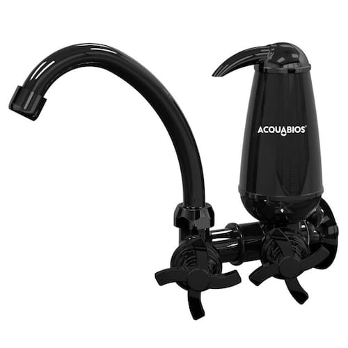 Torneira Cozinha De Parede Com Filtro Bica Móvel Acquabios Preta Torneira Filtro Bica Móvel Quadriseta 1/4 de Volta AcquaBios