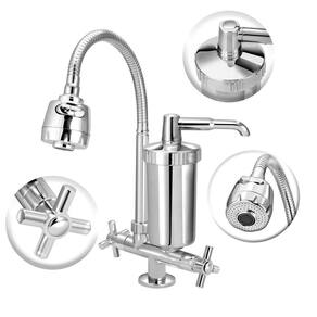 Torneira cozinha gourmet flexivel c/filtro abs mesa 1/4v Torneira cozinha gourmet flexivel c/filtro abs mesa 1/4v Fabricado em plástico super-resistente abs , possui alta resistência a riscos e a corrosões, conservando a beleza do produto por muito mais tempo. Deixe o ambiente bonito e elegante, invista neste torneira e tenha um produto de qualidade e designer fantástico, perfeita para pequenos ambientes, essa peça oferece maior praticidade e charme. Dados técnicos: - instalação: mesa - feito em abs plastico de engenharia com alta resistência e durabilidade . - mecanismo 1/4 de volta com pastilha cerâmica. - acompanha 1 refil de filtro embutido no copo. - pressão de água: 02 a 40 m.C.A. - tubo gourmet flexível - chuveirinho com duas opções de saída contínuo ou chuveirinho - filtro: abs cromado - tipo do elemento filtrante vela : carvão ativado; - 3 meses de contra defeito de fabricação e mecanismo de vedação. - o refil do filtro é para 1000l de água. aconselhamos em uso domestico a troca a cada 6 meses - a rosca é conexão padrão de 1/2 ou seja, o furo deve ter 2 cm ou 20,5mm. Você vai se surpreender com a qualidade do produto Recomendações de uso, manutenção e limpeza: limpar a torneira apenas com um pano macio e sabão neutro. Não usar produtos abrasivos como: sapólio, palha de aço e produtos químicos. Marca: Não Informado Ean: 0074468275416