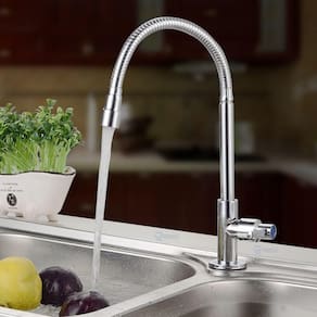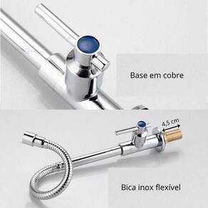 As torneiras gourmet de cozinha mesa contam com bica móvel em Aço Inox gira 360 e flexível podendo ajustá-las aos mais diversos tamanhos de pias. Possui mecanismo 1/4 de volta que permite a rápida abertura e fechamento da torneira e corpo em metal. Conta também com arejador em forma de comei-a, ele permite que o jato fica mais suave e uniforme, evitando respingos. A torneira gourmet cozinha é uma excelente escolha para quem procura custo x benefício. Fabricados em metal cromado, com componentes em Aço Inox e ABS ABS é uma resina termoplástica derivada do petróleo de excelente qualidade com acabamento todo cromado. Ficha técnica: Tipo de bica: giratória e flexível Tipo de mecanismo: 1 /4 de volta Tipo de arejador: jato concentrado Bitola: 1/2 Pressão Mínima: 2 m.C.A. Pressão Máxima: 40 m.C.A. Fixação: Mesa Somente Água Fria Indicado para: cozinha. Marca: Radiaste