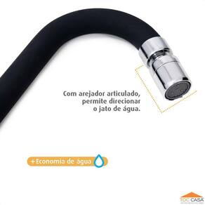 Cor/Acabamento: Bica revestida em Silicone preto. Conexão e arejador cromado