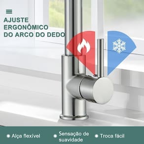 A Torneira de Cozinha Monocomando Domum Inox 304 Escovado é ideal para quem busca funcionalidade, durabilidade e design moderno. Fabricada em aço inoxidável 304, oferece alta resistência à corrosão, fácil limpeza e longa vida útil. O acabamento escovado valoriza o ambiente e combina com diversos estilos de cozinha. Possui bica móvel com design flexível, facilitando o uso em pias e bancadas, além de sistema monocomando que permite controlar temperatura e vazão com apenas uma mão. O aerador integrado contribui para a economia de água sem comprometer o desempenho. De instalação simples em furo único, é uma escolha prática e eficiente para cozinhas modernas e gourmet. Acabamento: Escovado Acompanha Arejador: Sim Altura: 40 cm Altura Bica: Média Altura da saída de água: 12 cm Altura Total: 40 cm Ambiente Principal: Cozinha Bitola: 1/2 Compatível com sistema de aquecimento: Sim Comprimento: 14 cm Cor: Prata Cor do Produto: Prata Diâmetro: 10 mm Economizador: Sim Itens Inclusos: 1 Torneira Completa Largura: 17 cm Linha ou Coleção: Domum Local de Uso: Cuba, Mesa Manual de Especificação Técnica: https://product-hub-prd.madeiramadeira.com.br/185571172/documents/1657f90a-e0a1-4e04-af68-4097b211c9443409222685117719448854129.pdf Manual de Montagem e Instalação: https://product-hub-prd.madeiramadeira.com.br/185571172/documents/64c89654-d7bb-4c52-8e9e-3f34ead5bfa23409221685117719448824599.pdf Marca: WAY Mecanismo de Vedação: Convencional Modelo: torneira cozinha, torneira monocomando, torneira inox 304, torneira escovada, torneira domum, torneira gourmet, torneira bica móvel, torneira bancada Origem do Produto: Importado Peso: 2 kg Possui desviador: Não Quantidade de Jatos: 2 Tipo de Acionamento: Alavanca Tipo de Bica: Articulável Tipo de Instalação: De Mesa Tipo de Jato: Aerado