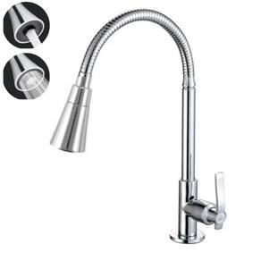 A Torneira Flexível Metal possui bica Flexível de Mesa com 360 de rotação e foi projetada no padrão para a mesa. A Torneira é fabricada em aço inoxidável que garante alta resistência à corrosão e oxidação comuns em ambientes com excesso de umidade e água, e mantém a beleza do tratamento especial cromado. Ela também possui sistema de reparo cerâmico 1/4 de volta o qual garante a vedação e a ausência de vazamentos por muito mais tempo, o qual proporciona um acionamento rápido e prático com apenas um toque. Seu acabamento é em aço cromado, fácil de limpar, o qual proporciona um design diferenciado e moderno para seu ambiente. Arejador com três jatos - Bica com arejador visando economia de água ou com jato de água tipo ducha. Flexível podendo ser posicionado em qualquer direção. Maior conforto e maior funcionalidade ao produto. Design inovador trazendo à sua cozinha um toque especial. Ficha Técnica: Marca: Radiaste Torneira Gourmet Mesa metal cromado Material: Corpo da Torneira Metal, Mecanismo de Cerâmica em 1/4 de Volta Saída de Água: Chuveirinho ou Jato Concentrado Bica Flexível Fácil Instalação Bitola: 1/2 Pressão mínima: 3 m.C.A. Pressão máxima: 40 m.C.A. Fixação: Mesa Somente Água Fria. Marca: Radiaste