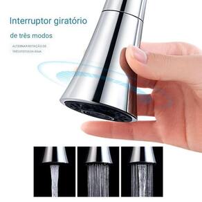 Arejador com três jatos - Bica com arejador visando economia de água ou com jato de água tipo ducha. Flexível podendo ser posicionado em qualquer direção. Maior conforto e maior funcionalidade ao produto. Design inovador trazendo à sua cozinha um toque especial.