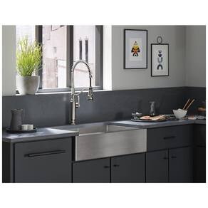 A torneira possui um pulverizador puxado que permite que você controle a água com uma mão e vá além da pia para concluir outras tarefas da cozinha. A cabeça de pulverização de 3 funções inclui tecnologias de anel, Boost e Sweep Spray. O anel é ótimo para a limpeza diária, o Boost permite aumentar a taxa de fluxo em 30 e o Sweep Spray possui bicos angulares que criam uma lâmina poderosa para limpar seus pratos e pia.