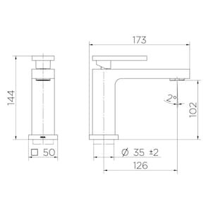 Comprimento do produto: 173 mm Altura do produto: 144 mm Largura do produto: 50 mm Diâmetro do furo para instalação: 35mm