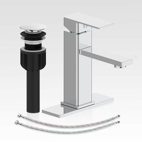 Casavilla Conjunto de torneira de banheiro BF1001C - ?DINHEIRO BEM GASTO?A decoração completa da casa inclui: torneira Baño * 1, tampa de furo de 15 cm * 1, ralo pop-up (com transbordamento) *1, linhas de suprimento*2. Compre um conjunto de uma só vez, economizando tempo e dinheiro. Design universal para um visual completo, mantém a unidade de uso e traz uma sensação de familiaridade na experiência. Acredite que se você usou este conjunto, você definitivamente o recomendará a seus amigos ou parentes. - ?FÁCIL DE OPERAR?Alça única inteligente para facilitar o controle da temperatura e do fluxo da água. A torneira de lavatório moderna tem cartucho de disco de cerâmica comercial de alta vedação integrado que passou por 500.000 testes de ciclo para garantir um desempenho durável sem gotejamento para torneiras de banheiro. Fornece fluxo de água suave e baixa probabilidade de vazamento. Crie um ambiente de experiência de banheiro confortável e seguro para você. - ?FÁCIL DE INSTALAR?Altura total: 18,3 cm; Altura do bico: 11 cm; Alcance do bico: 12 cm. A torneira de lavatório de montagem em deck virá com todo o hardware de montagem. Escolha livre de instalação de 1 ou 3 furos para atender aos seus vários requisitos de pia (inclui placa de cobertura de deck). Instale a torneira em 4 etapas fáceis, instalação DIY sem encanador. Embalagem requintada para caixa de presente, todas as peças são separadas por embalagem de amortecimento EPE (algodão pérola) para evitar danos durante o envio. Economize tempo e dinheiro. - ?Fácil manutenção?Produtos forjados de construção de aço inoxidável SUS 304 sem grafite. O tratamento de superfície polido cromado adicionado 18/8 teor de cromo/níquel oferece um acabamento anticorrosão e antiferrugem superior que evita que sujeira, como impressões digitais ou manchas de água, adira à superfície da torneira, tornando o banheiro mais limpo. A limpeza diária com um pano ou água é suficiente, menos tempo de limpeza e mais tempo se divertindo com sua família. - ?GARANTIA LIMITADA LIMITADA?Garantia de devolução e devolução do dinheiro em 120 dias. Garantia vitalícia de substituição de peças e suporte técnico sem preocupações. Se você tiver alguma dúvida sobre a torneira lavamanos, sinta-se à vontade para nos enviar um e-mail via Amazon e resolveremos isso dentro de 12 horas.