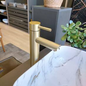 Torneira Monocomando Bica Alta Dourada Fosca Reno RTA 706 Transforme seu banheiro ou lavabo com a sofisticação da Torneira Monocomando Bica Alta Dourada Reno RTA 706. Seu design moderno e acabamento fosco garantem elegância e durabilidade. Água Quente e Fria: Sistema monocomando para controle fácil da temperatura. Durabilidade Garantida: Cartucho cerâmico com mais de 600.000 ciclos de uso. Instalação Simplificada: Acompanha kit completo para fácil instalação. Especificações Técnicas: Marca: Reno Modelo: RTA 706 Design: Redonda Cor: Dourada Fosca Tipo: Monocomando Bica Alta Material: Aço Inox 304 Sistema: Água quente e fria : 3 anos contra defeitos de fabricação Instalação: Furação da bancada: 35mm de diâmetro. Kit de instalação incluso: Duas mangueiras para água quente e fria. Rosca de fixação com porca para aperto e borrachas de vedação. Pressão: 4 mca metros por coluna d'água a 40 mca. Dúvidas A Banho&Casa está à disposição para atendê-los de segunda a sexta, das 8:30 às 17:30. Marca: Não Informado