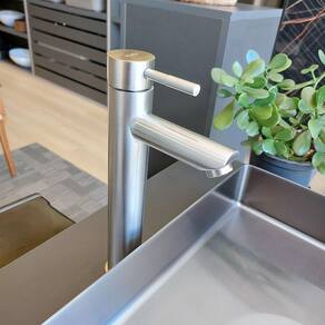 Torneira Monocomando Bica Alta Escovada Reno RTA 707 Transforme seu banheiro ou lavabo com a sofisticação da Torneira Monocomando Bica Alta Escovada Reno RTA 707. Seu design moderno e acabamento escovado garantem elegância e durabilidade. Água Quente e Fria: Sistema monocomando para controle fácil da temperatura. Durabilidade Garantida: Cartucho cerâmico com mais de 600.000 ciclos de uso. Instalação Simplificada: Acompanha kit completo para fácil instalação. Especificações Técnicas: Marca: Reno Modelo: RTA 707 Design: Redonda Cor: Escovada Tipo: Monocomando Bica Alta Material: Aço Inox 304 Sistema: Água quente e fria : 3 anos contra defeitos de fabricação Instalação: Furação da bancada: 35mm de diâmetro. Kit de instalação incluso: Duas mangueiras para água quente e fria. Rosca de fixação com porca para aperto e borrachas de vedação. Pressão: 4 mca metros por coluna d'água a 40 mca. Dúvidas A Banho&Casa está à disposição para atendê-los de segunda a sexta, das 8:30 às 17:30.