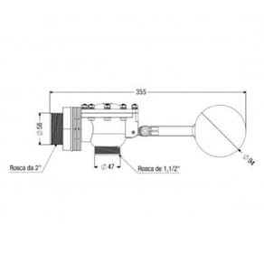 • Aplicação: grande reservatório. • Comprimento total: 360 mm. • Temperatura mínima: 0 °C. • Temperatura máxima: 80 °C. • Pressão mínima: 1 kgf/cm² (10 m.c.a). • Pressão máxima: 12 kgf/cm² (100 m.c.a). • Rosca 2". • Boia compacta: Ø94 mm. • Acompanha filtro para limpeza;