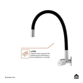 A Torneira de Cozinha Flexível de Parede Itaguari Pingoo.casa combina praticidade e estilo para transformar a rotina da cozinha por ser produzida em latão e silicone, unindo resistência, durabilidade e um design versátil que se adapta a diferentes estilos de ambiente.