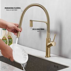 A versatilidade de sua mangueira flexível aliada a bica giratória, permite a limpeza e a higienização de utensílios e de sua bancada de forma fácil e eficiente.