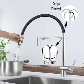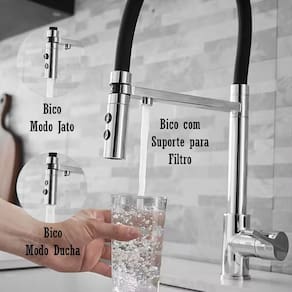 Torneira de Cozinha Monocomando Flexível com Suporte para Filtro e Jato Ducha
