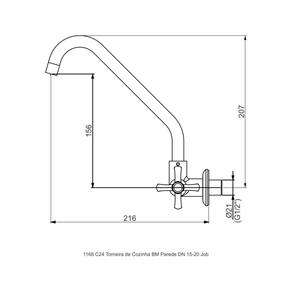 Torneira De Cozinha Parede - Job - 1168 - Torneira de cozinha metálica de parede econômica, além de ser prática, resistente e funcional. - Composição básica: liga de cobre, plásticos de engenharia e elastômeros.