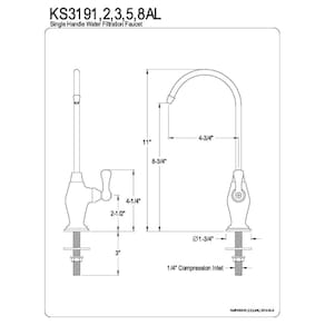 Kingston Brass Gourmetier KS3192AL Torneira de filtragem de água de manípulo único para restauração, latão polido, 10,81 x 4,63 x 1,75