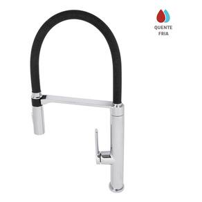 Descubra a funcionalidade e o estilo moderno com a nossa Torneira Monocomando Gourmet, perfeita para cozinhas que exigem versatilidade e eficiencia. Com um design elegante em cores cromado e preto, esta torneira e ideal para quem busca uma solucao pratica sem abrir mao da estetica.